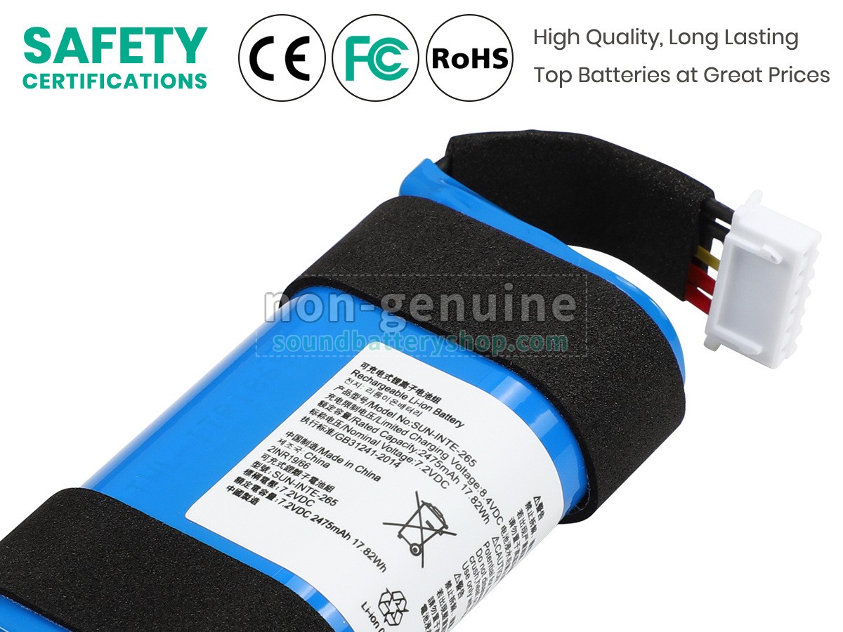 From intelligent protection circuitry to thermal and electrical safeguards, every speaker battery for JBL SUN-INTE-265 is designed to protect against overcharging, overheating, and short circuits. This multi-layer safety approach ensures a longer lifespan and dependable operation during every charge and every play session.