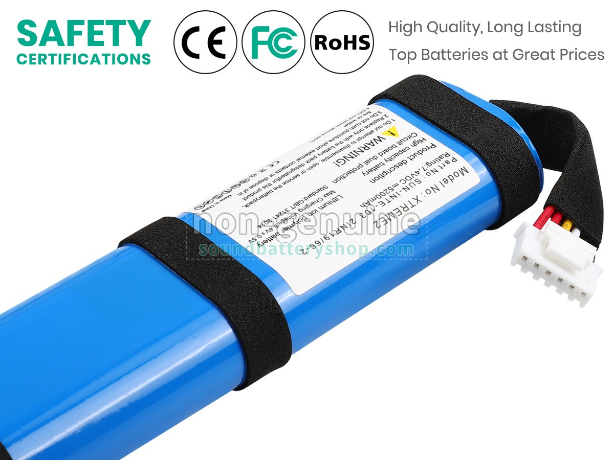 From intelligent protection circuitry to thermal and electrical safeguards, every speaker battery for JBL XTREME2GRNIN is designed to protect against overcharging, overheating, and short circuits. This multi-layer safety approach ensures a longer lifespan and dependable operation during every charge and every play session.
